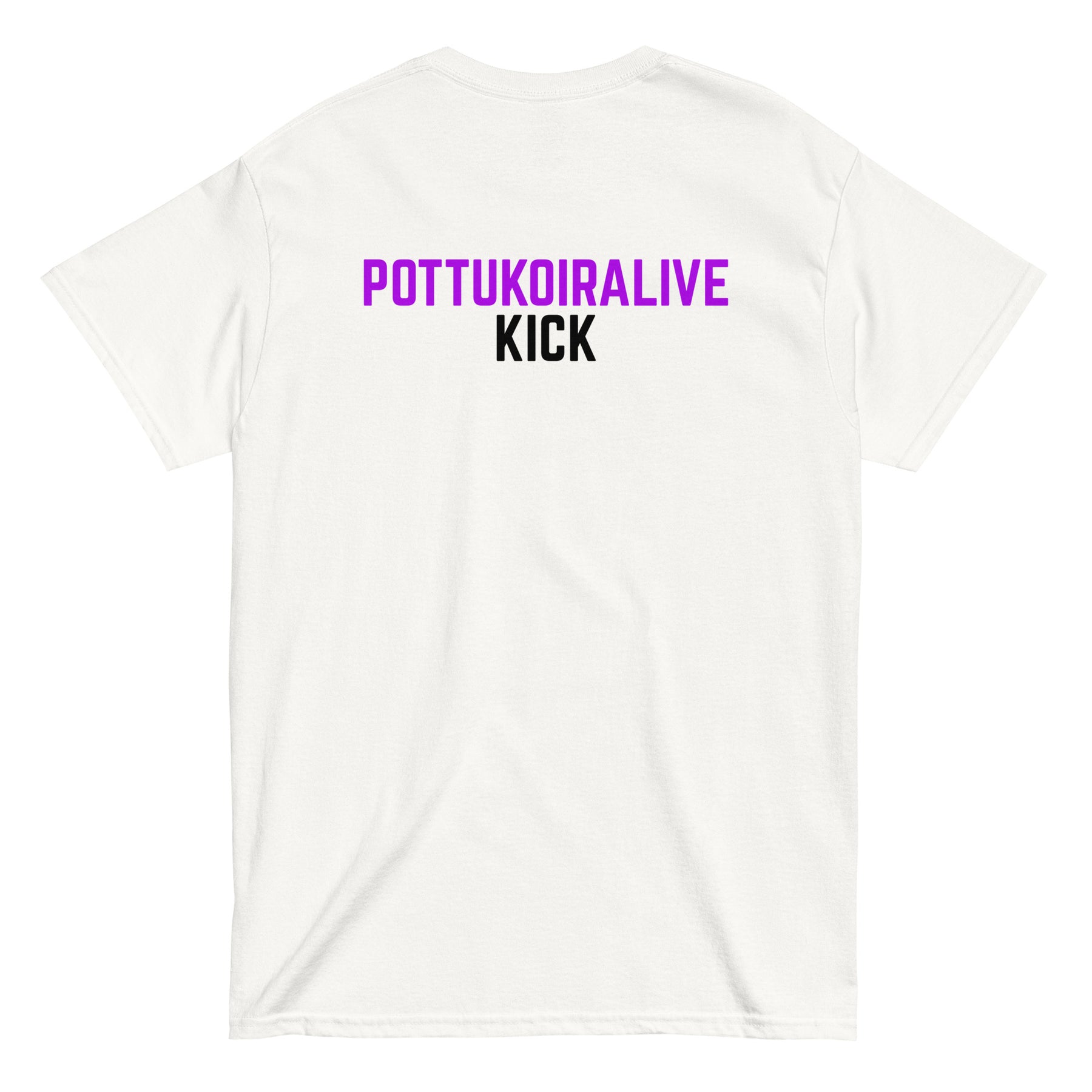 100% PuuvillaaTransitmies kuva edessä ja Pottukoiralive kick teksti takana.Vaaleanharmaa väri on 90% Puuvillaa / 10% PolyesteriäUnisex